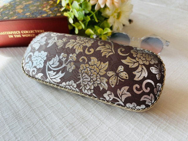 韓国の伝統生地を使用したメガネケースです。 韓布ならではのやさしい風合いと、 現代の暮らしにもなじむ落ち着いた色合い。 一つひとつ生地の表情が異なるため、 すべて一点ものとなります。 かばんの中に入れてもしっかり守ってくれる ハードタイプ。 メガネをやさしく包み込む仕様に仕上げました。 普段使いはもちろん、贈り物にもおすすめです。 ---------------------------------- 【サイズ】 ・横 : 約17cm ・幅 : 約7cm (※一般的なメガネが入るサイズ) 【素材】 ・表地:韓国伝統生地(韓布) ・裏地:フェルト ポリエステル100% ・本体 : ハードタイプ 【ご注意事項】 ・一枚物の生地を使用しているため、裁断位置により模様の出方が一点一点異なります。 ・生地の特性上、色むらや織りの表情に個体差があります。 ・写真と実物の色味が、モニター環境により異なる場合があります。 ・強い摩擦や水濡れにはご注意ください。